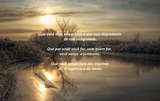 Este poema enfatiza a importância de viver de acordo com princípios de integridade, respeito próprio e aos outros. Recomenda que devemos nos libertar do medo e arrogância, valorizar um coração luminoso e agradecer pela vida. Pede também que cantemos para celebrar a vida e amizade.