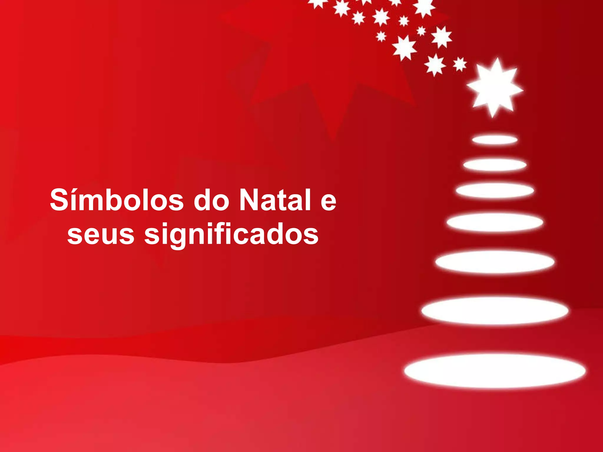 O documento descreve os principais símbolos e tradições de Natal, incluindo sua origem e significado, como a árvore de Natal, presépio, Pai Natal, estrela de Natal e sinos. Também explica a data da comemoração do Natal e como certos costumes se popularizaram, como a decoração com árvores e a figura do Pai Natal inspirada em São Nicolau.