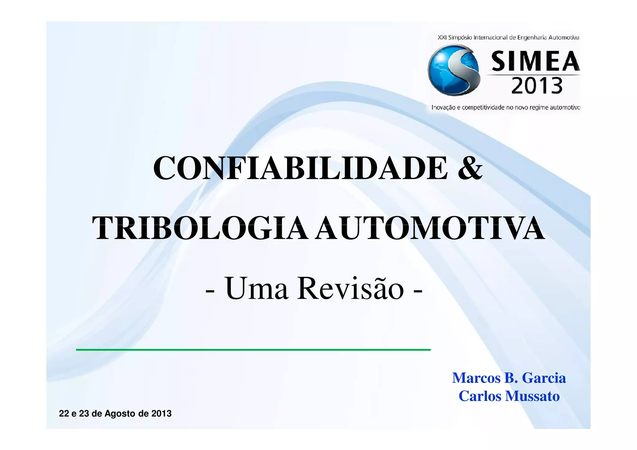 - A necessidade de melhorias nos métodos para determinação da confiabilidade e estimativa do tempo de vida dos veículos, aliados ao conhecimento da tribologia, principalmente para sistemas motor e de transmissão e seus regimes