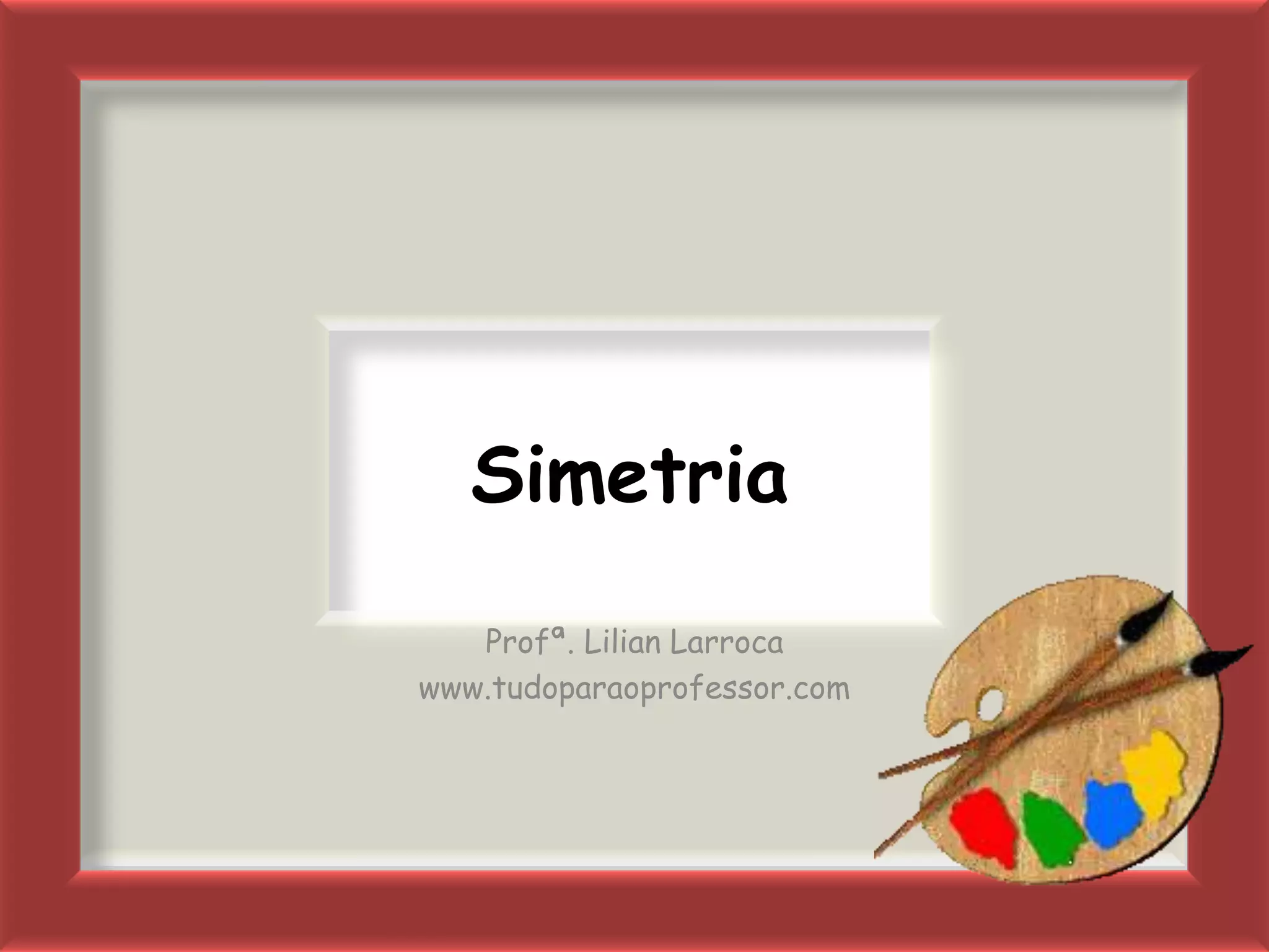 O documento fornece instruções para atividades de simetria, pedindo aos alunos para completar desenhos de forma simétrica posicionando peças ou completando desenhos de lados opostos de uma linha central de simetria. As instruções também fornecem um link para outros recursos sobre simetria.
