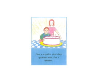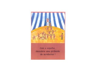 Este documento é uma aula sobre simetria dirigida a alunos do 1o ciclo. Nele, a professora introduz o tema da simetria na natureza e em formas geométricas, explica o que é um eixo de simetria e apresenta algumas atividades práticas como identificar figuras simétricas e formar palavras simétricas usando um espelho.
