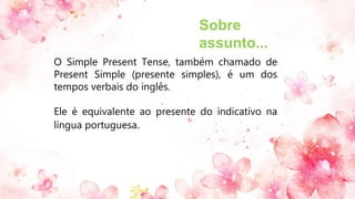 O documento explica o uso do tempo verbal Simple Present no inglês. Ele é usado para ações habituais no presente e verdades universais. O documento descreve as regras para a conjugação dos verbos na forma afirmativa, negativa e interrogativa no Simple Present, incluindo exemplos.