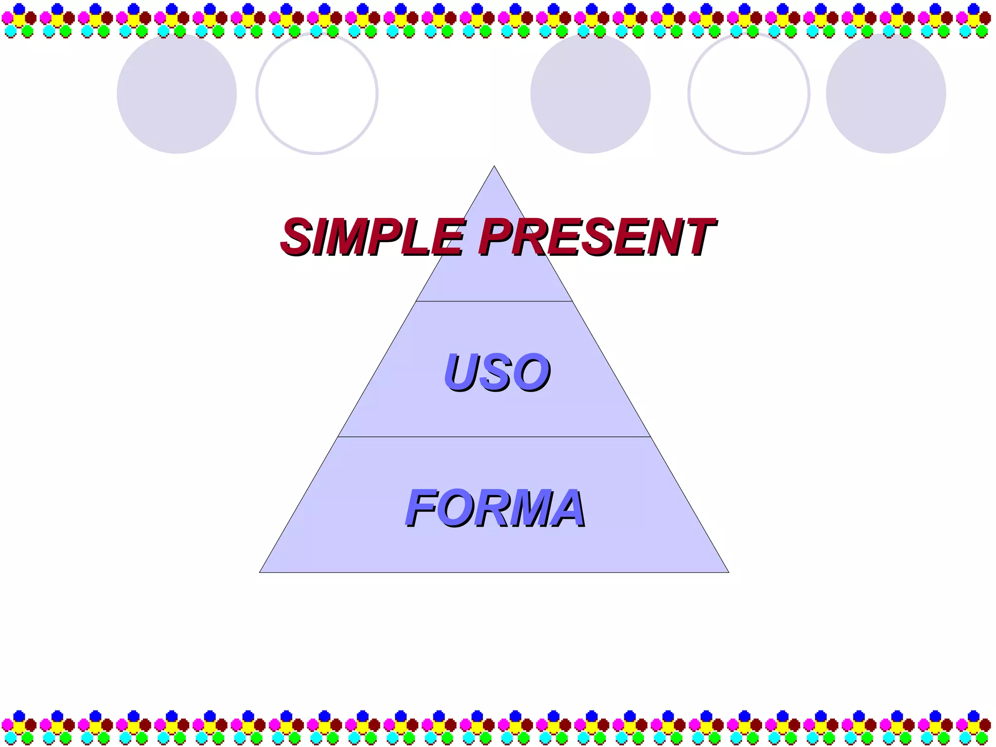 O documento resume as formas do Simple Present em inglês. Explica que é usado para ações habituais e verdades universais. Detalha as formas afirmativa, negativa e interrogativa tanto para verbos regulares com "do" quanto para verbos irregulares com "does". Demonstra como conjugar os verbos de acordo com o sujeito na forma afirmativa, negativa e interrogativa.