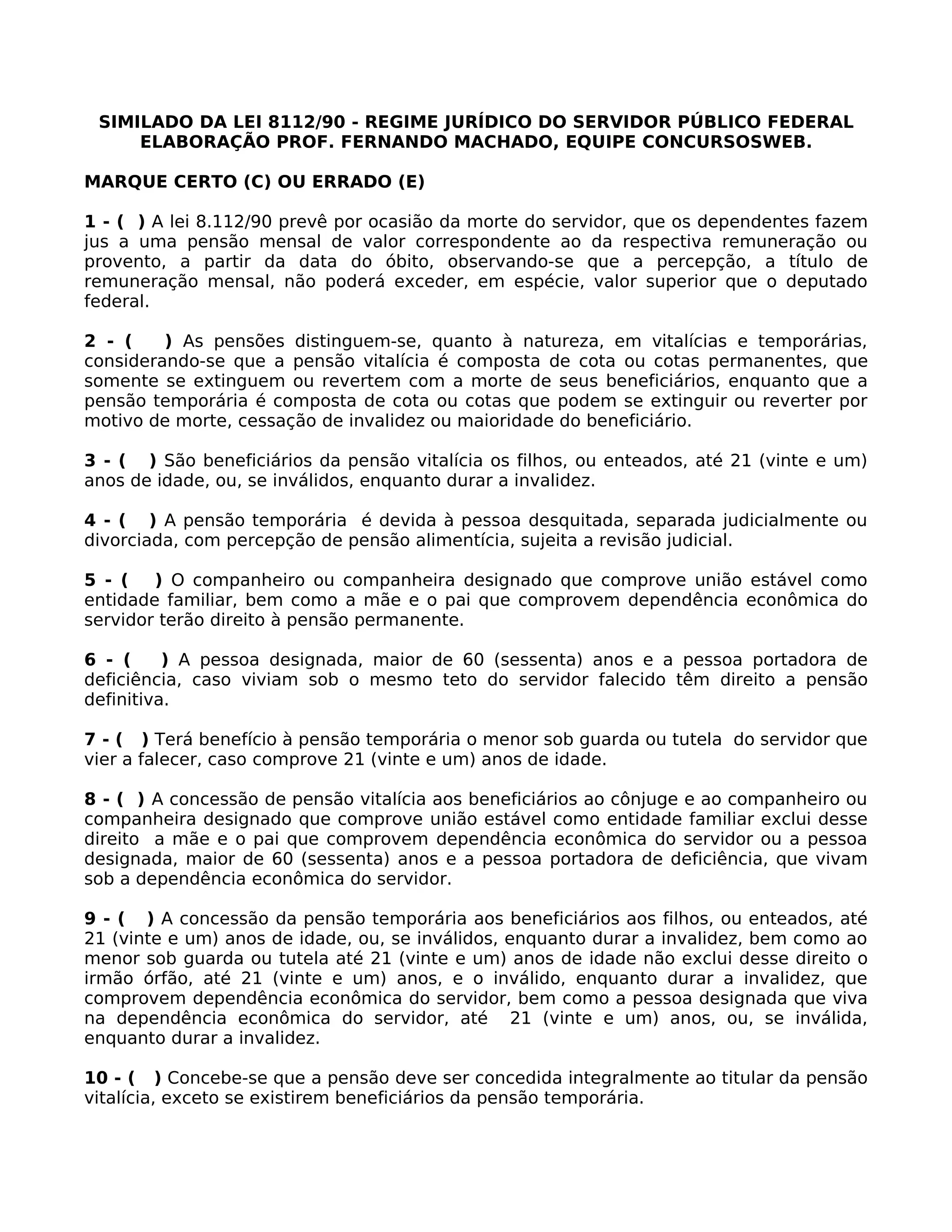 Este documento resume as principais regras sobre assistência à saúde do servidor público federal de acordo com a Lei 8.112/90. A assistência à saúde do servidor ativo ou inativo e de sua família é prestada mediante convênios com entidades fechadas de autogestão, sem fins lucrativos, ou mediante contratos respeitando a Lei de Licitações Públicas. Perícias e avaliações médicas, na ausência de médico oficial, devem ser realizadas preferencialmente por unidades do SUS ou INSS.