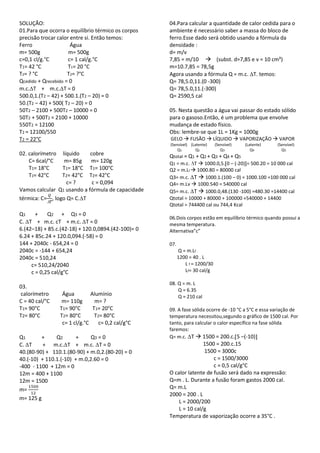 2) A questão 1 pede para calcular a temperatura final de equilíbrio térmico quando se misturam ferro e água.