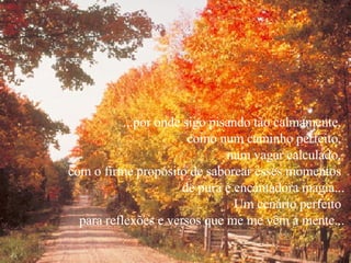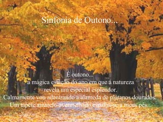 O documento é uma coleção de poemas e reflexões sobre a estação do outono. Descreve as cores douradas das folhas caindo, a beleza melancólica da natureza se preparando para o inverno, e usa essa imagem para refletir sobre os ciclos da vida, do amor e da esperança humana.