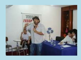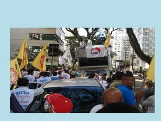 O documento discute o papel de um sindicalista como um guardião e lutador que nunca está sozinho e vive na solidariedade. Também aborda como a vida moderna significa que ninguém possui sua própria vida, mas sim pertence ao Estado, empresa, partido e várias outras organizações.
