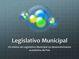 O documento discute como o Legislativo Municipal pode afetar o desenvolvimento econômico do país, destacando a importância da segurança jurídica para atrair investimentos internos e externos, necessitando de um sistema jurídico básico sólido.