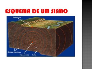 Catástrofes naturais, como sismos, podem ameaçar a vida e causar desequilíbrios nos ecossistemas. Sismos são vibrações das rochas geradas por energia liberada no interior da Terra, estudadas pela sismologia, e podem ter impactos devastadores. Eles podem ser classificados pela profundidade e avaliados usando escalas de intensidade e magnitude, com registros feitos por sismógrafos.