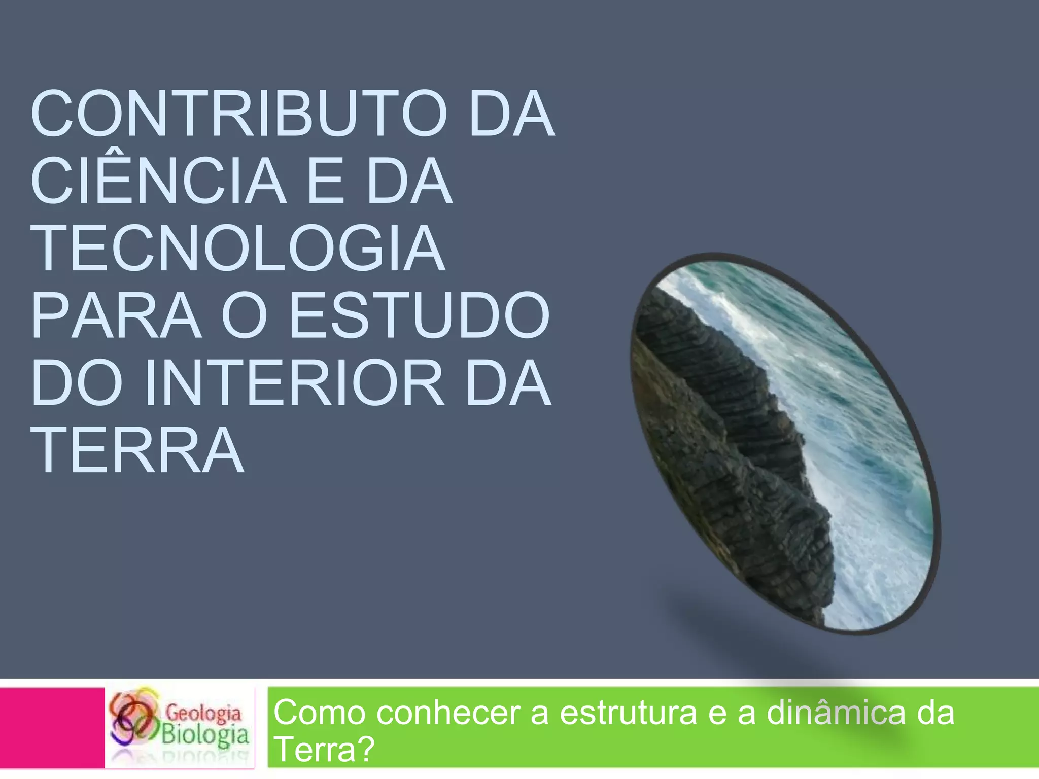 Este documento descreve como os métodos diretos e indiretos permitem aos cientistas estudar o interior da Terra. Os métodos diretos incluem observações geológicas, materiais expelidos por vulcões e perfurações. Os métodos indiretos incluem o estudo das velocidades sísmicas e dados de satélites sobre o campo magnético. Juntos, esses métodos fornecem informações sobre a estrutura e dinâmica complexas no interior da Terra.