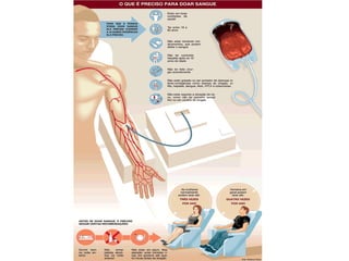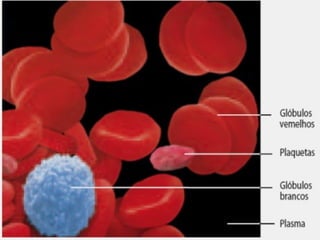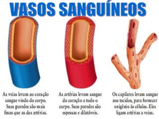 O documento descreve os principais componentes e funcionamento do sistema circulatório, incluindo o coração, vasos sanguíneos, circulações pulmonar e sistêmica, e grupos sanguíneos. Ele também discute condições médicas relacionadas como infarto, AVC e hipertensão.
