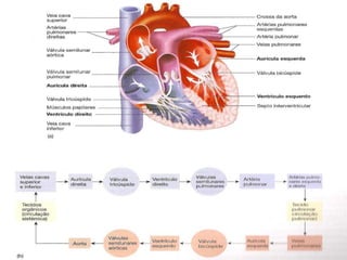 O documento aborda a anatomia e fisiologia do sistema cardiovascular, destacando a estrutura do coração, funções, histologia e o sistema de condução elétrica. Discussões sobre hipertensão arterial, suas causas, consequências e controle, além de condições vasculares como trombose venosa e varizes, são apresentadas. Também são discutidos distúrbios cardíacos como infarto agudo do miocárdio e insuficiência cardíaca, ressaltando diagnósticos e tratamentos.