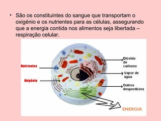O documento descreve o sistema circulatório humano, incluindo que o sangue circula pelo corpo através do coração e dos vasos sanguíneos para fornecer oxigênio e nutrientes às células e remover resíduos. O coração bombeia o sangue em circuitos pequeno e grande através dos pulmões e do corpo.