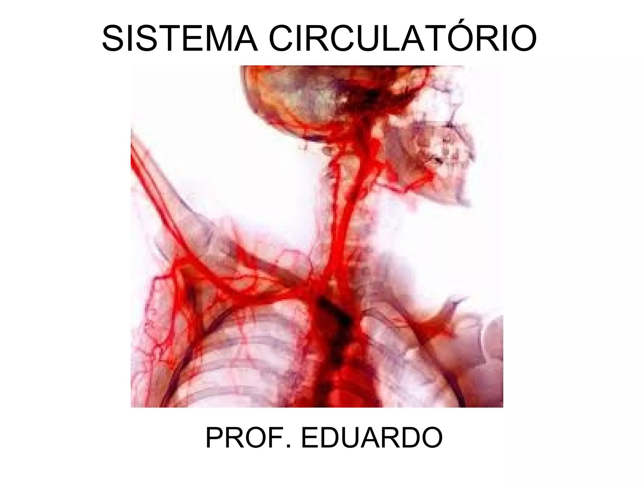 O documento descreve o sistema circulatório humano, incluindo sua função de transporte de substâncias pelo corpo, seus principais componentes como o coração, vasos sanguíneos e sangue, e a evolução da circulação em vertebrados.
