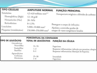 O documento descreve os principais componentes e funções do sistema circulatório, incluindo o coração, vasos sanguíneos, sangue e linfa. Detalha as estruturas do coração, como as camadas das artérias e veias, e explica o fluxo sanguíneo através do corpo.