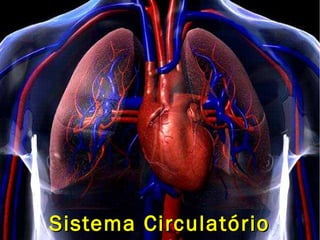 O documento descreve o sistema circulatório humano, incluindo sua anatomia, fisiologia e principais doenças. Em particular, explica que o sistema circulatório é responsável pelo transporte de nutrientes e oxigênio para as diversas partes do corpo através do coração e vasos sanguíneos. Também descreve os tipos de vasos sanguíneos, o processo de circulação do sangue no corpo, e doenças cardíacas comuns como infarto e varizes.