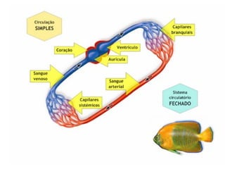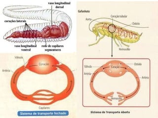 1) Existem três tipos de sistemas circulatórios: ausente, fechado e aberto.