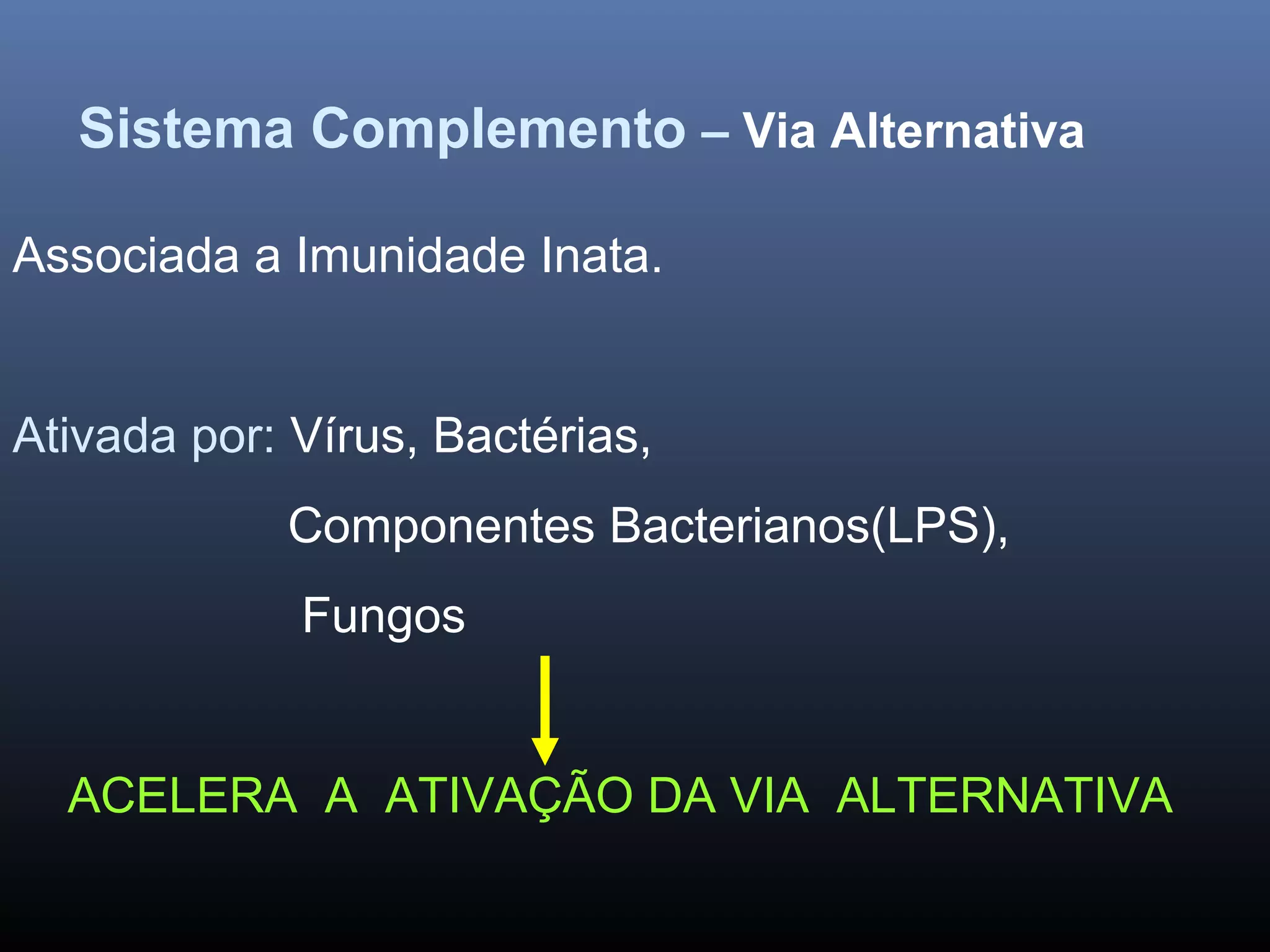 2) A via alternativa é ativada por vírus, bactérias e componentes bacterianos, levando à formação do complexo de ataque à membrana.