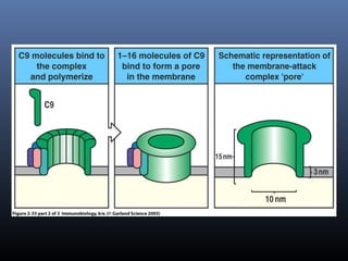 1) O documento discute o sistema complemento, incluindo suas vias de ativação, componentes e funções.