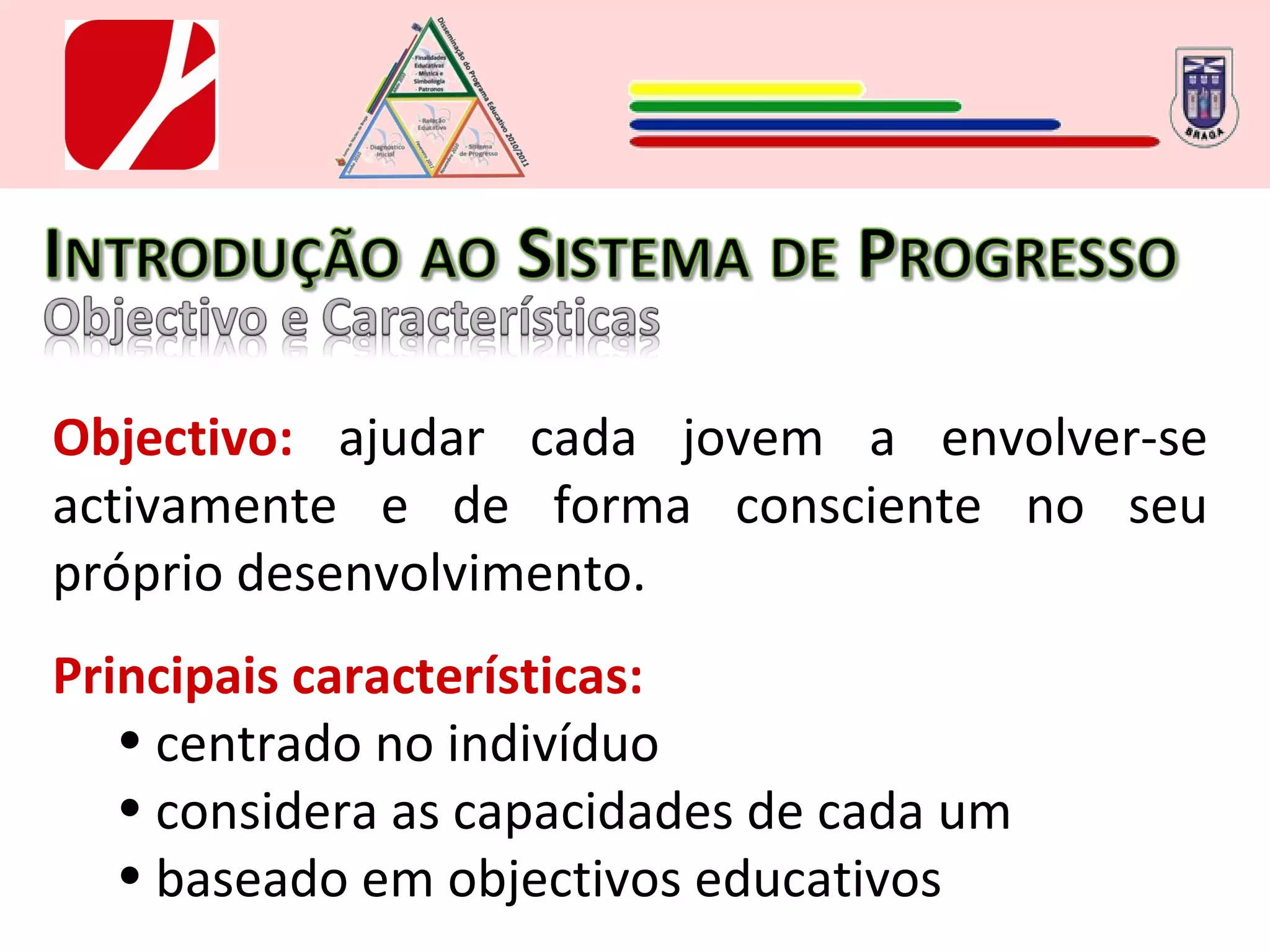 O documento descreve um programa de desenvolvimento pessoal para jovens centrado no indivíduo. O objetivo é ajudar cada jovem a se envolver ativamente em seu próprio crescimento. O programa oferece oportunidades educativas baseadas em objetivos, avaliação inicial e contínua, e reconhecimento dos progressos dos jovens.
