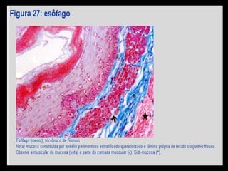 3) São descritas as camadas do trato gastrointestinal, sua inervação e o peritônio.