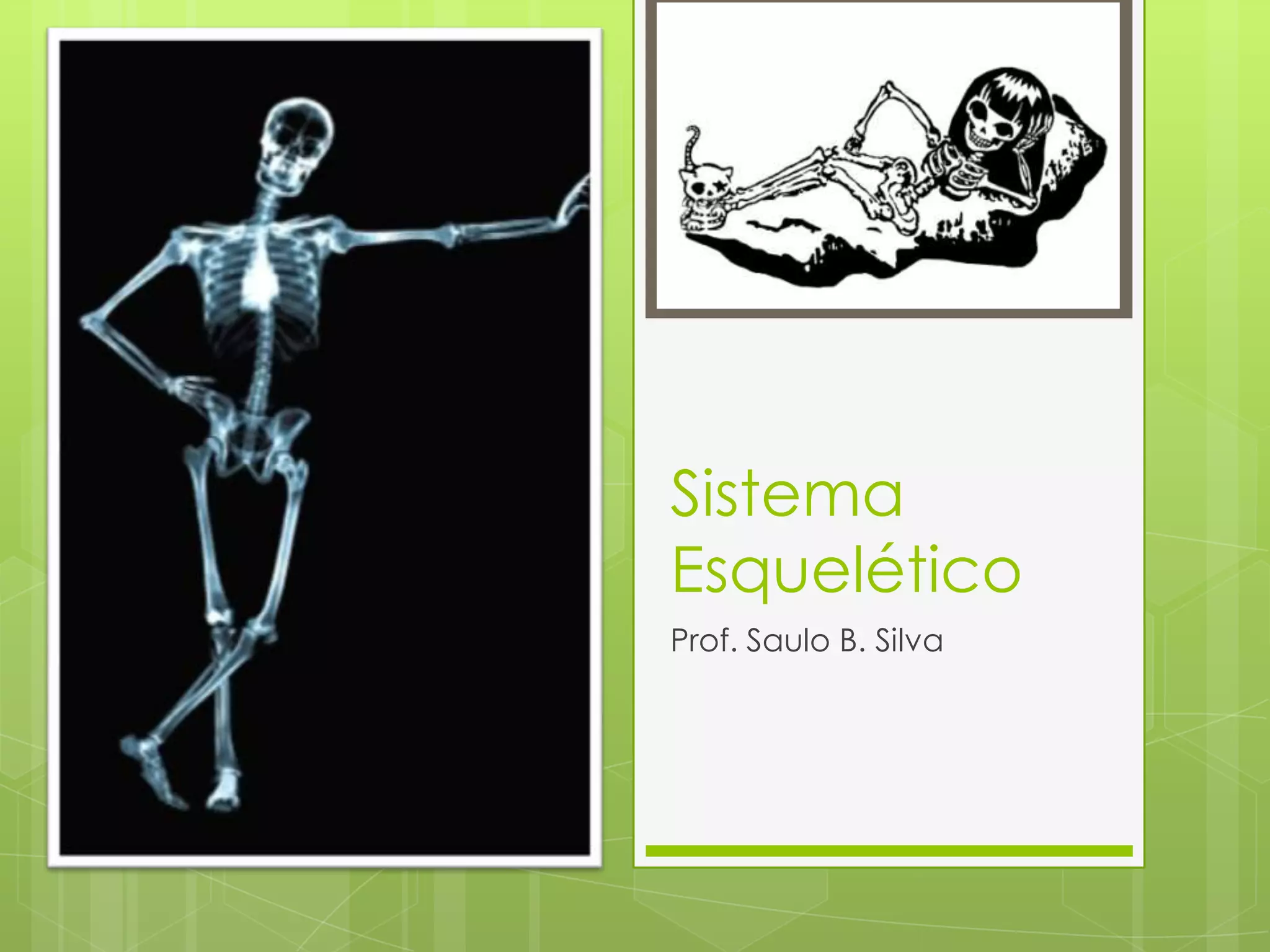 O documento descreve o sistema esquelético humano, incluindo suas principais funções de sustentação, proteção e locomoção. Ele divide o esqueleto em duas partes, axial e apendicular, e descreve os principais ossos de cada parte, bem como suas classificações, articulações, tecidos e diferenças entre esqueletos masculinos e femininos.