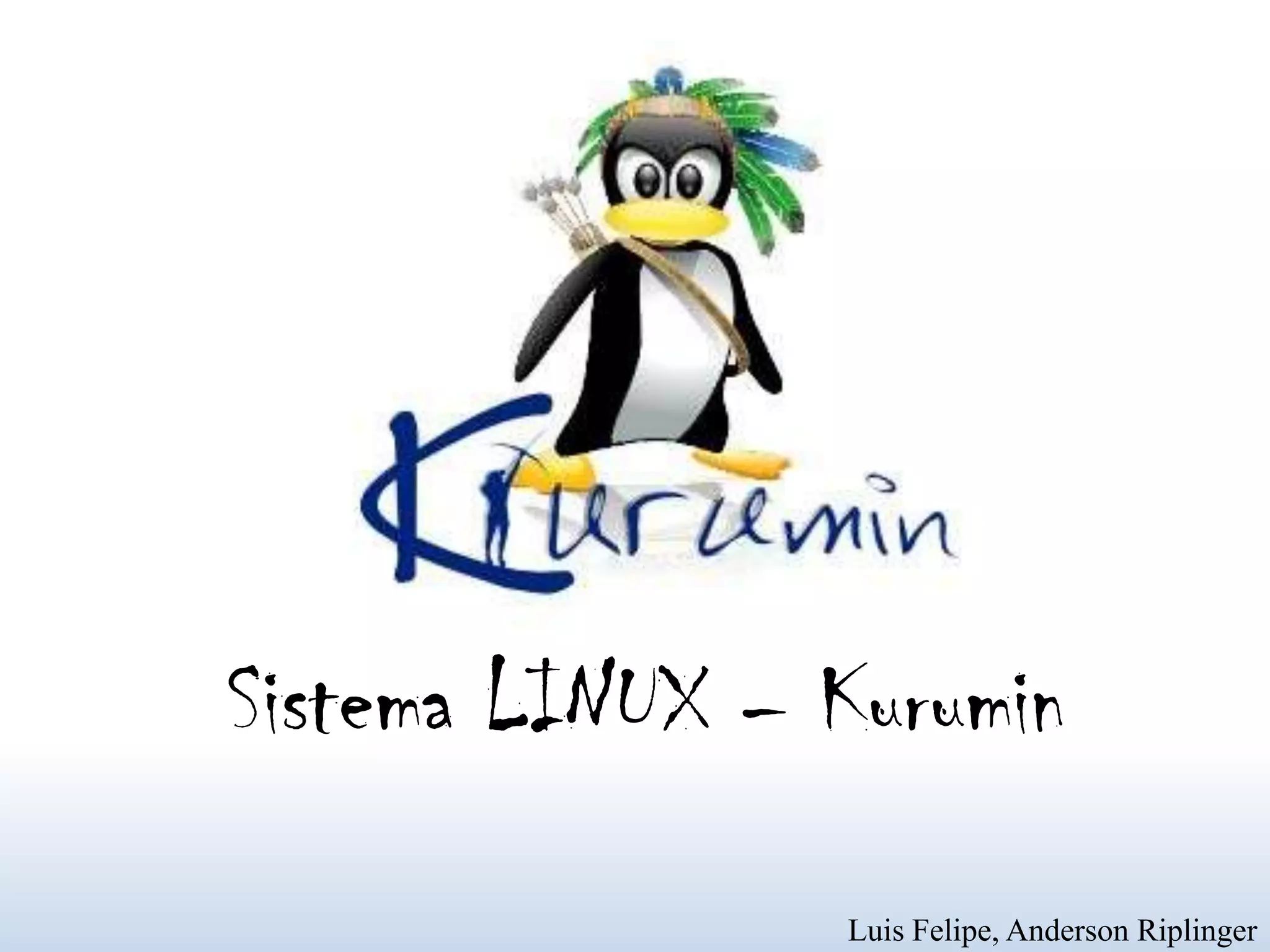 O documento descreve o sistema operacional Linux Kurumin, incluindo seu histórico, recursos e aplicativos. O Kurumin foi criado pelo programador brasileiro Carlos Eduardo Morimoto da Silva e é a distribuição Linux mais usada no Brasil, sendo adequada para iniciantes devido à sua interface intuitiva. O documento também explica os principais componentes da área de trabalho do Kurumin, como os diferentes ambientes, o painel e como iniciar aplicativos.