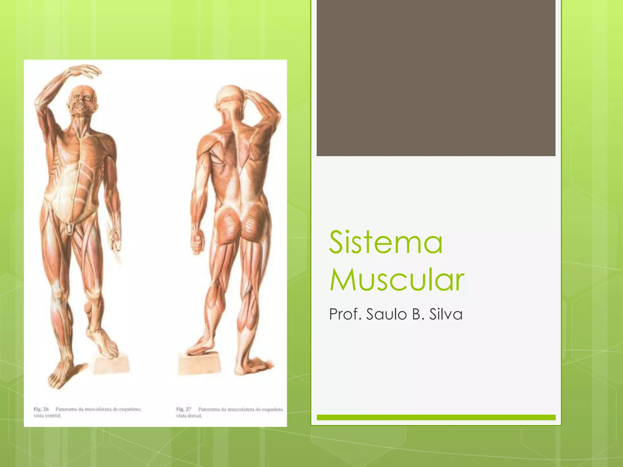 O documento descreve os três tipos de tecido muscular: liso, estriado e cardíaco. Detalha a estrutura dos músculos esqueléticos, formados por fibras musculares agrupadas em feixes e músculos. Explica também a contração muscular e a ação dos principais músculos do corpo.