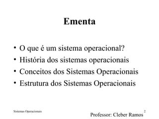 O documento discute os sistemas operacionais, definindo-os como o software responsável por gerenciar os recursos de hardware e escalonar tarefas. Apresenta os principais atributos dos sistemas operacionais como abstração de hardware e coordenação de recursos. Explica os tipos de sistemas operacionais como monoprogramáveis, multiprogramáveis e com múltiplos processadores.