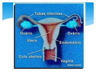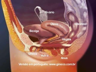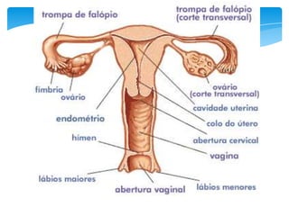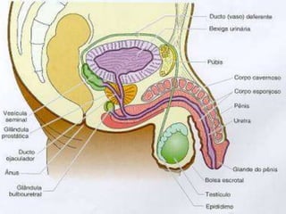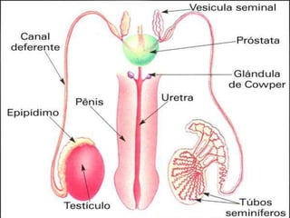 3. Os sistemas reprodutores masculino e feminino são detalhados, incluindo estruturas como testículos, ovários e órgãos reprodutores