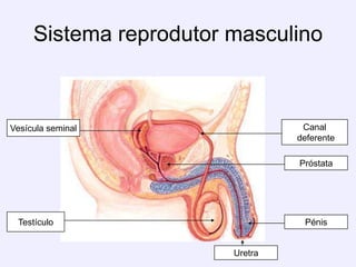 O documento descreve os sistemas reprodutores masculino e feminino, o processo de fecundação, divisão celular e desenvolvimento embrionário. Explica como a placenta, o saco amniótico e o cordão umbilical sustentam o feto durante a gestação, culminando no parto e nascimento do bebé.