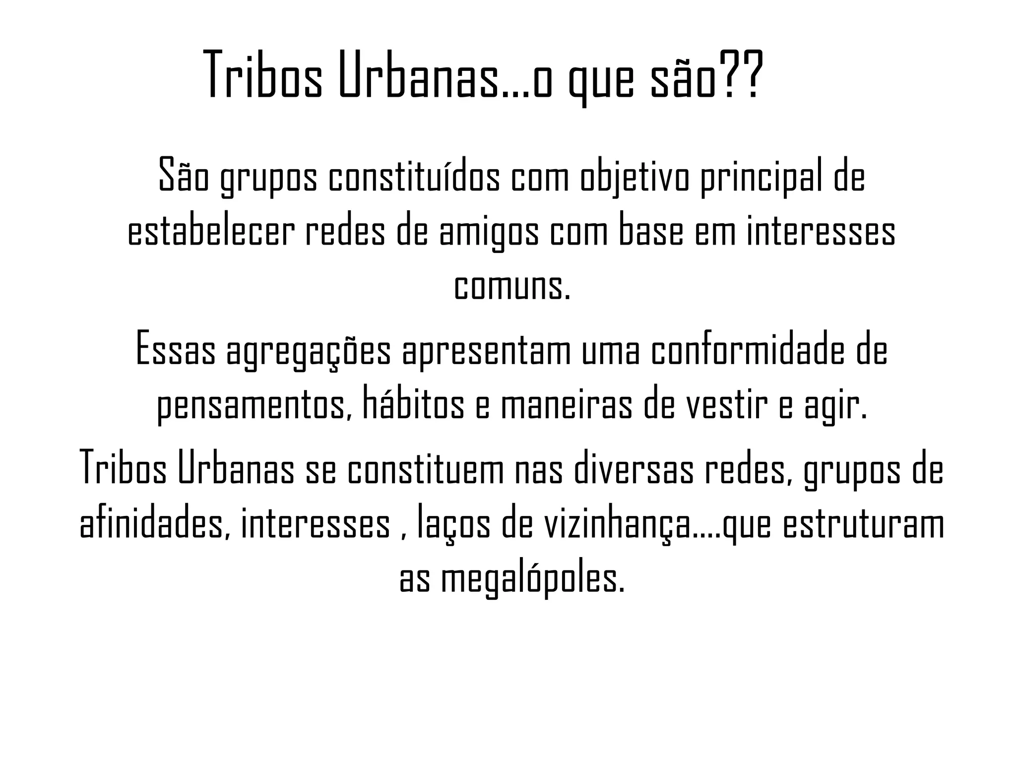 Tribos urbanas são grupos com interesses comuns que se conectam através de redes sociais. Skinheads surgiram na Inglaterra dos anos 1960 como uma subcultura da classe trabalhadora influenciada por rude boys, mods e música jamaicana, porém alguns grupos posteriores abraçaram ideologias políticas extremas. Diferentes grupos de skinheads se distinguem por suas perspectivas políticas, estilos musicais e modas preferidas.