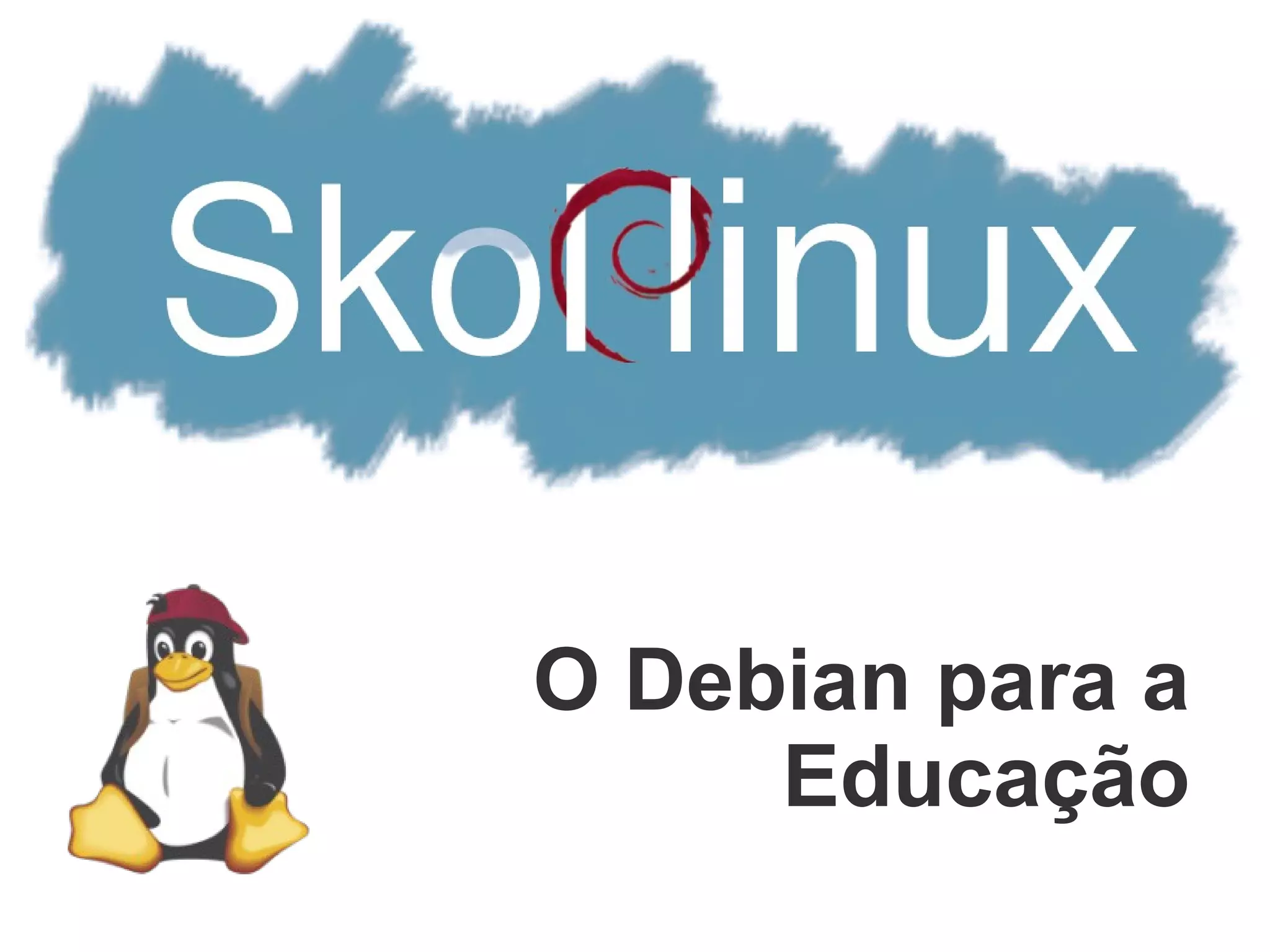 O documento descreve o projeto Debian Edu, que tem como objetivo fornecer uma solução completa e gratuita de software livre para escolas chamada Skolelinux. O Skolelinux oferece facilidade de instalação e administração, além de softwares educacionais e idiomas locais.