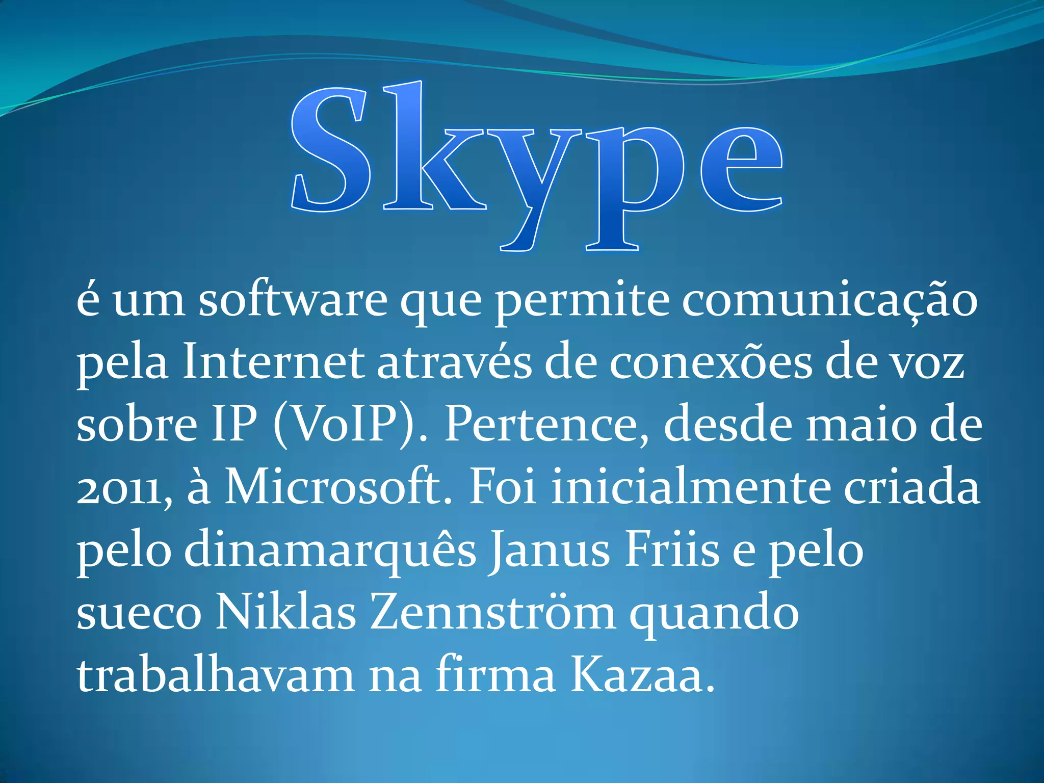 O Skype é um software de comunicação VoIP que permite chamadas de voz e vídeo gratuitas entre usuários. Foi criado originalmente por empreendedores dinamarqueses e suecos e agora pertence à Microsoft.