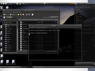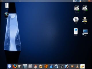 O documento descreve o sistema operacional Linux Slackware, incluindo seus requisitos de hardware, histórico e funcionalidades. Foi criado por Patrick Volkerding em 1993 e é uma das distribuições Linux mais antigas ainda ativas. Apesar de ter perdido popularidade com o surgimento de outras distribuições mais amigáveis, ainda é usado em servidores e por usuários experientes.