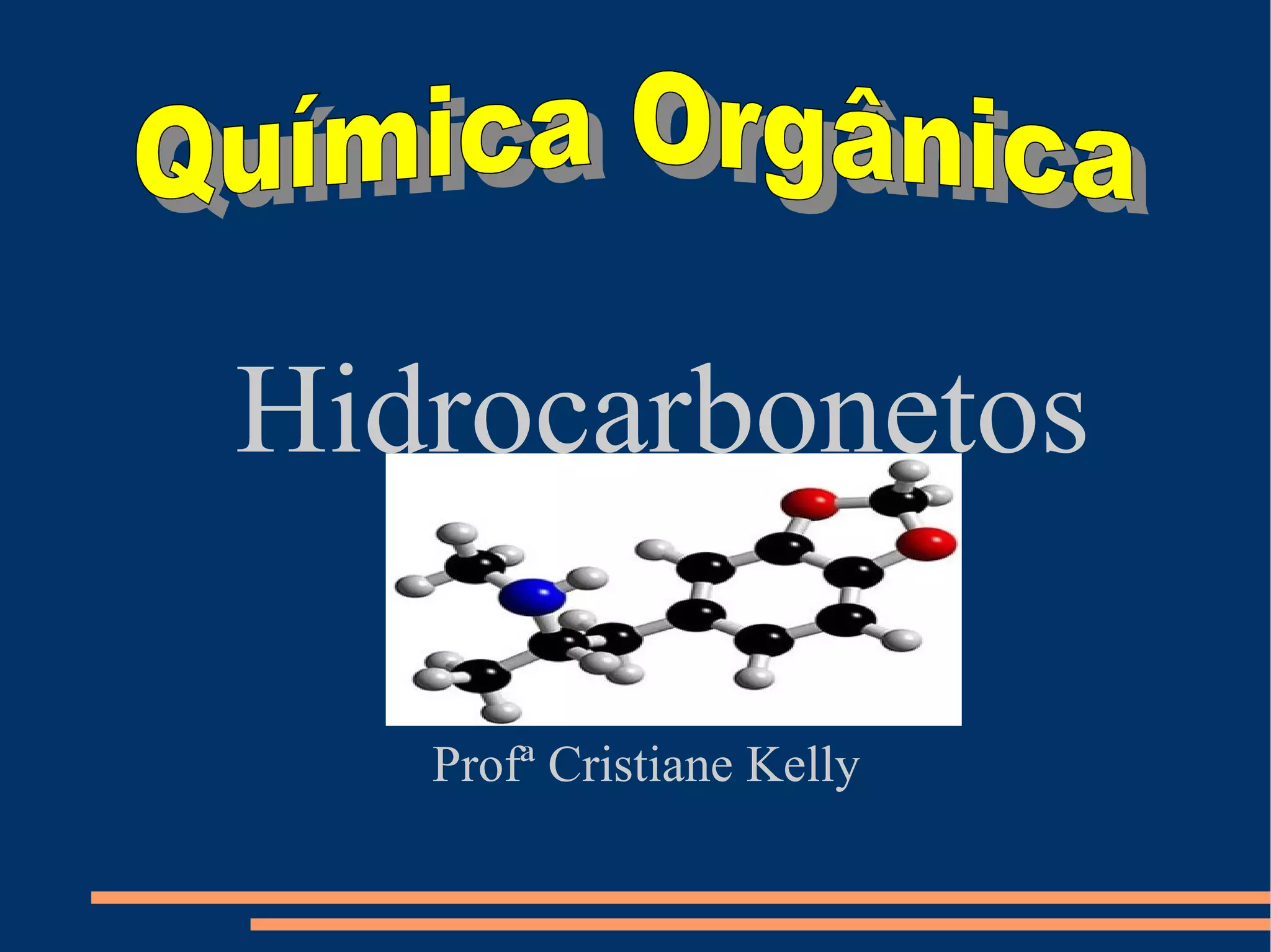 O documento discute os principais tipos de hidrocarbonetos, incluindo alcanos, alcenos, alcinos, alcadienos, cicloalcanos, cicloalcenos e aromáticos. Explica que a nomeclatura oficial segue regras da IUPAC usando prefixos, intermediários e sufixos para descrever o número de átomos de carbono.