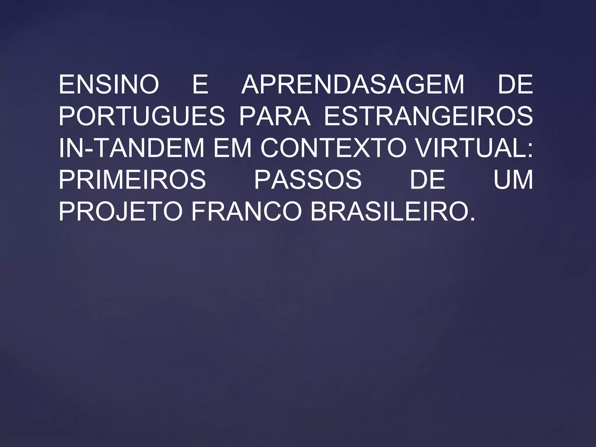 Este documento descreve um projeto franco-brasileiro para ensinar português para estrangeiros através de aprendizagem colaborativa entre falantes nativos e não nativos em um ambiente virtual. O projeto está em seus primeiros estágios de desenvolvimento para testar esta abordagem de aprendizagem em tandem para ensinar a língua portuguesa online.