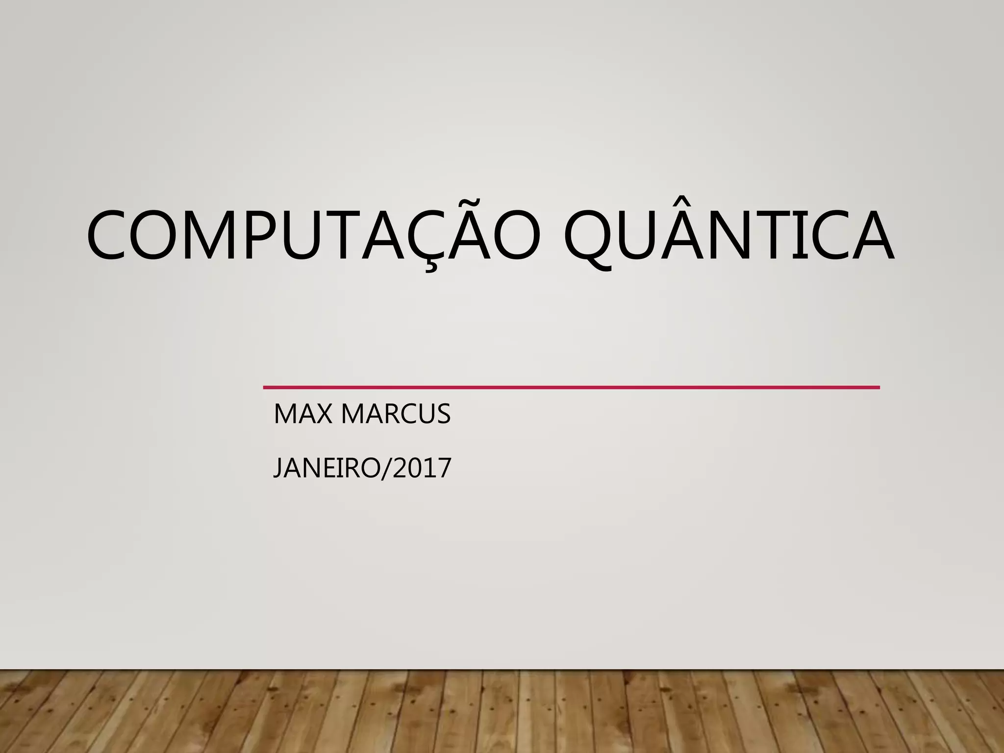 O documento discute a computação quântica, incluindo o que é computação clássica e quântica, por que usar computação quântica, o que é um qubit, o algoritmo de Shor e o primeiro computador quântico Orion.