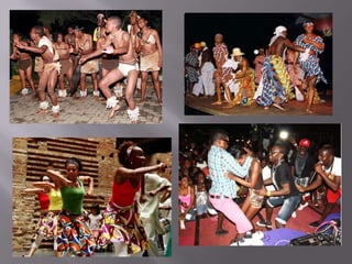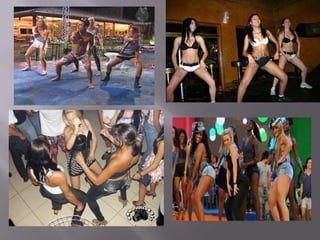 O documento discute diferentes estilos de dança ao redor do mundo, incluindo danças indígenas, africanas, e estilos modernos como hip hop e funk. Ele descreve características e origens de cada estilo, como os símbolos e instrumentos usados em danças indígenas e a importância da dança para a cultura e unidade africana. O documento também discute o desenvolvimento do hip hop e do funk nos Estados Unidos e como esses estilos se espalharam para o Brasil.