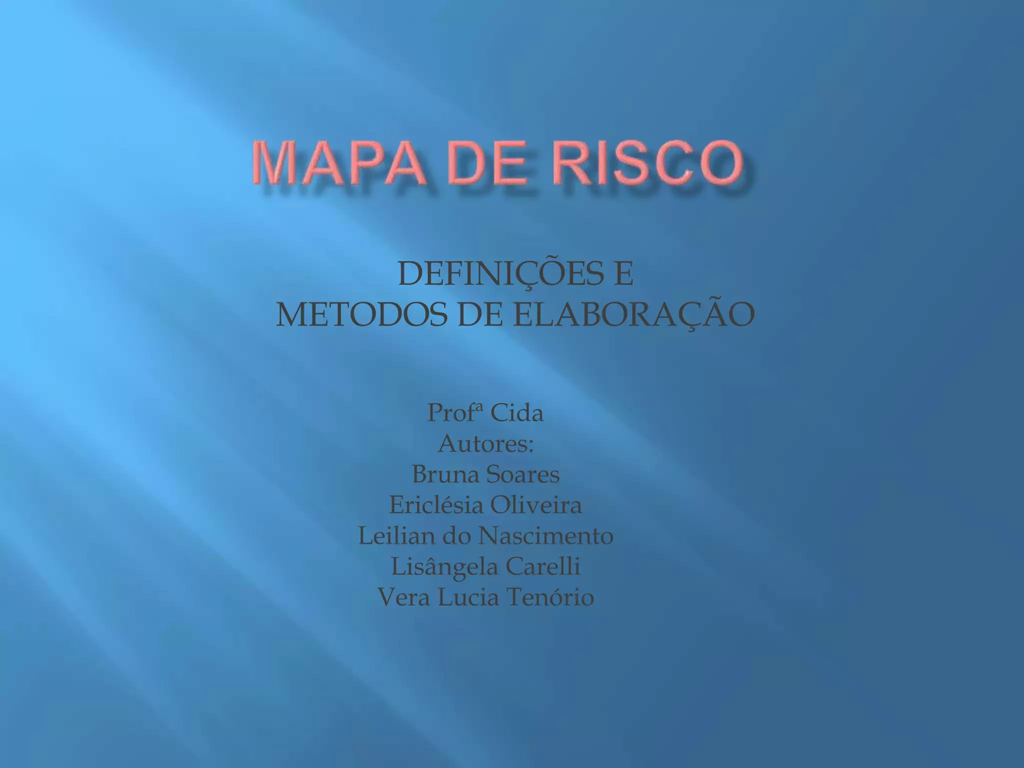 O documento discute o mapeamento de riscos no ambiente de trabalho, definindo-o como um método para identificar riscos físicos, químicos, biológicos, ergonômicos e de acidentes aos quais os trabalhadores estão expostos. Ele explica como elaborar um mapa de riscos passo a passo, identificando os riscos, sua intensidade e medidas preventivas existentes. Além disso, destaca a importância do mapeamento para a segurança dos trabalhadores e a redução de custos para as empresas.