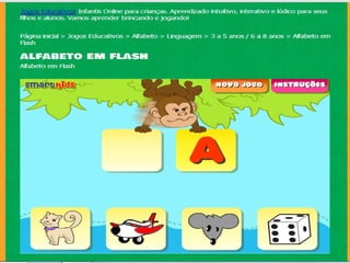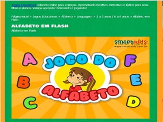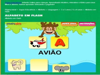 O documento descreve um jogo educativo online para alfabetização de crianças com 6 anos. Ele analisa os recursos necessários, a apresentação, sons, linguagem, interação e propostas pedagógicas do jogo. A análise conclui que o jogo é adequado para desenvolver habilidades de alfabetização nessa idade.