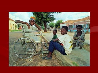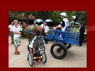1. O documento discute os desafios enfrentados por pessoas com deficiência física em sua inclusão social, como o acesso limitado a transporte público e prédios.