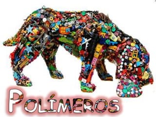 O documento discute vários tipos de polímeros, incluindo polietileno, silicone, polifenóis, termofixos, copolímeros, vulcanização, poliéster, poliuretano, elastômeros, aramida, policarbonato, impactos ambientais de plásticos, termoplásticos e fibras têxteis. Fornece detalhes sobre as estruturas químicas e usos comuns de cada um.