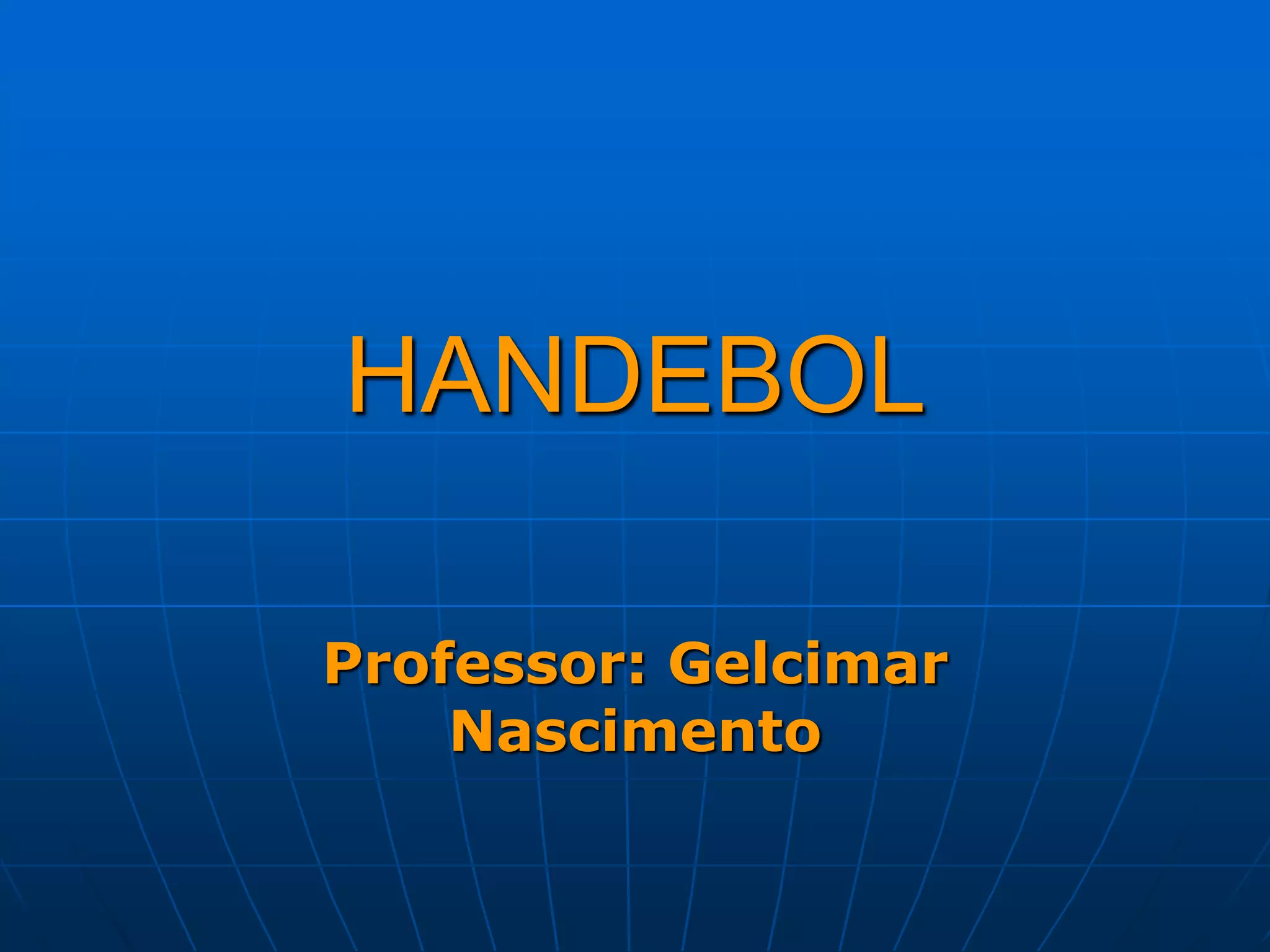 O documento resume a história e as regras básicas do handebol, incluindo sua criação na Alemanha em 1919, as posições dos jogadores e os principais fundamentos e sistemas táticos. Também descreve as regras para cobrança de faltas, punições e duração das partidas.
