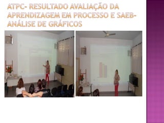 O documento discute a implementação de tecnologias de informação e comunicação no ambiente escolar para enriquecer o processo de ensino-aprendizagem. Pretende-se conscientizar professores sobre como as tecnologias podem viabilizar aprendizagens ativas e colaborativas, e favorecer o aperfeiçoamento docente. Também se busca explorar recursos audiovisuais e registrar objetivos e atividades realizadas com o uso de tecnologias.