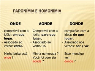 Este documento aborda diferentes aspectos da língua portuguesa como regras de acentuação, uso de crase, distinção entre termos semelhantes e funções sintáticas e semânticas. Contém várias questões com alternativas para identificar qual regra gramatica ou ortográfica se aplica a determinado contexto.