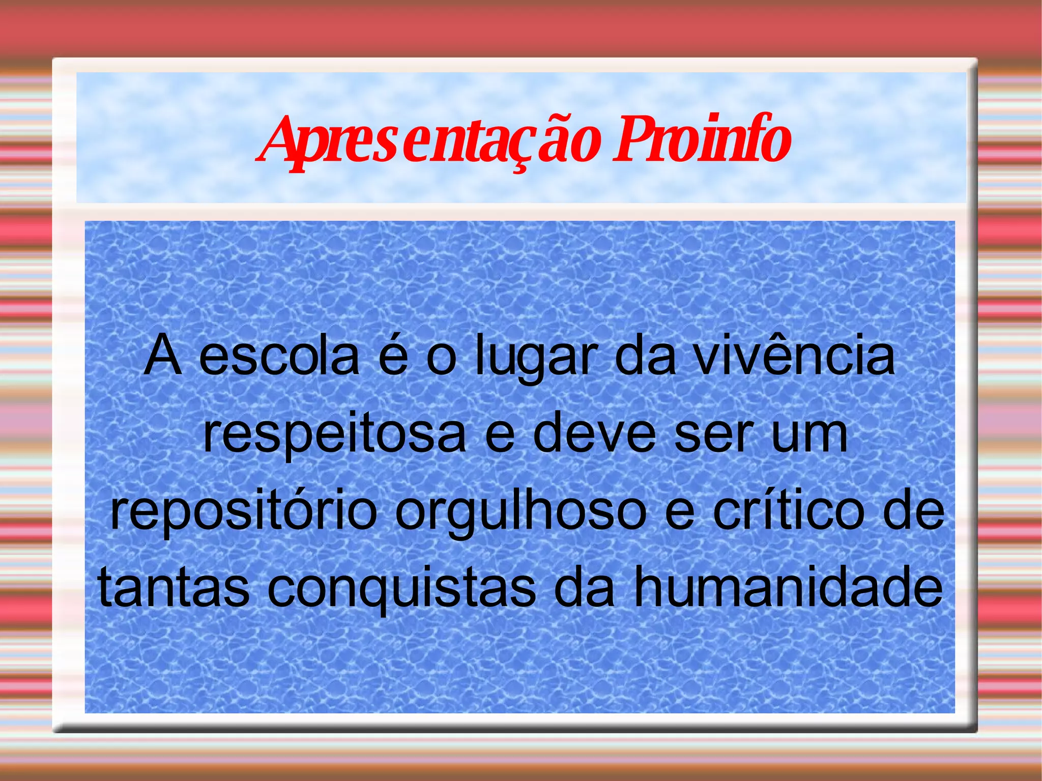A escola deve ser um lugar de respeito onde os alunos aprendem sobre as conquistas da humanidade de forma orgulhosa e crítica.