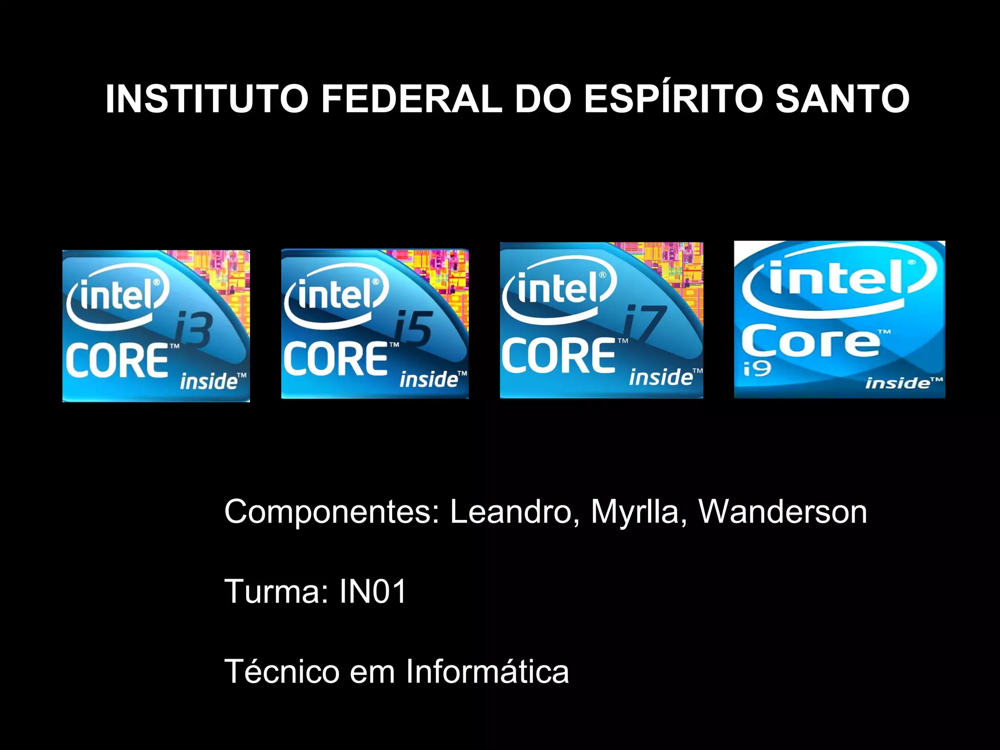 O documento descreve as principais características das tecnologias de processadores Intel Nehalem, Core i3, Core i5, Core i7 e Core i9, incluindo número de núcleos, cache, barramento e fabricação. Também lista modelos para desktop e notebook e placas-mãe compatíveis.