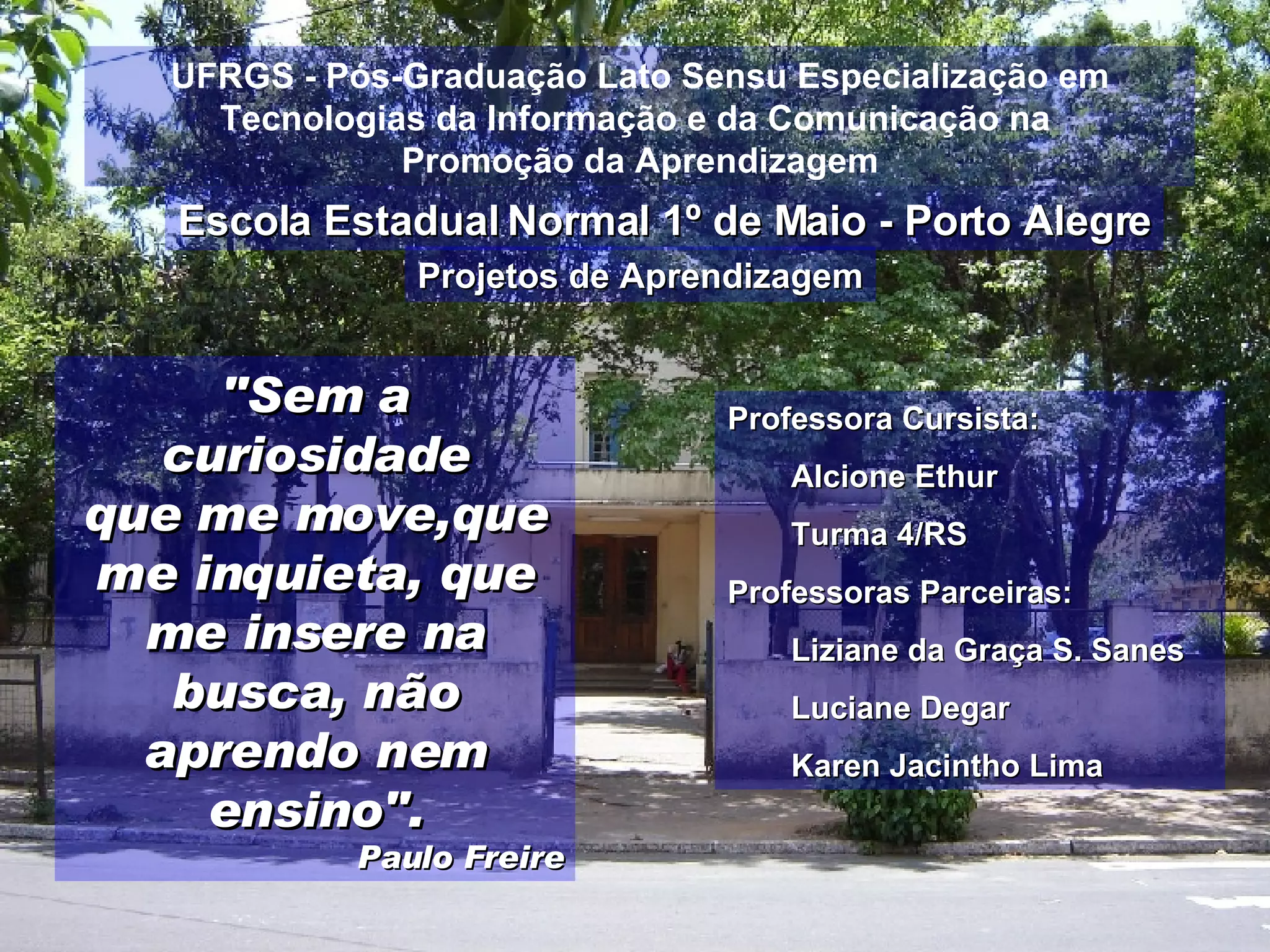 A professora Alcione Ethur da turma 4/RS apresentou seu projeto de aprendizagem em parceria com outras professoras. O projeto se baseia na citação de Paulo Freire sobre a importância da curiosidade para aprender e ensinar.
