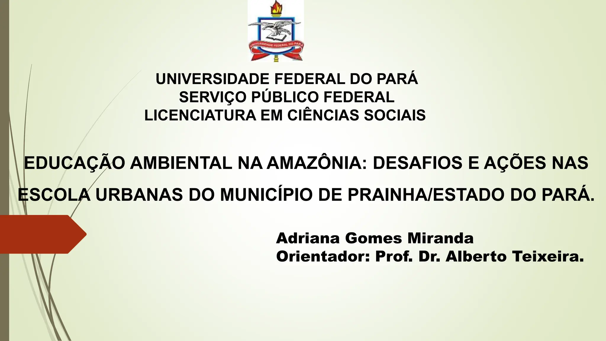 O documento discute a educação ambiental nas escolas urbanas do município de Prainha no Pará. A pesquisa investigou como as políticas públicas de educação ambiental estão sendo implementadas nas escolas locais. Os resultados mostraram que as escolas reconhecem a importância do tema, mas enfrentam desafios como falta de recursos e preparo dos professores. A pesquisa sugere projetos como horta escolar e coleta seletiva para melhorar a educação ambiental na região.